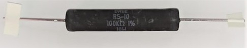 Resistencia, 100 K Ohms, 10 Watts, marca Vishay/Dale. Longitud 47.5mm, Diámetro 9.5mm.